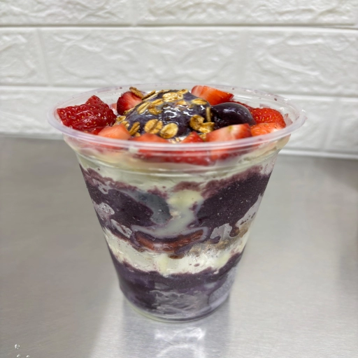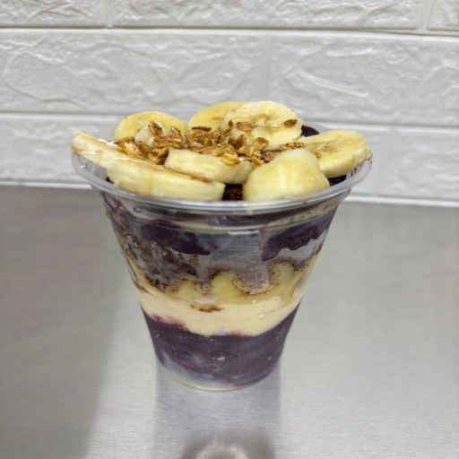 Um lanche com maionese, hambúrguer artesanal de 90g, mussarela e pão de brioche + batata 80g + Danone de morango + um ... Ver completo